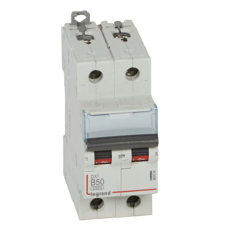 407514 Legrand DX3 - Disjoncteur bipolaire 50A 2P B50 6000A/10kA - Courbe B - 230V - À vis - 2 modules