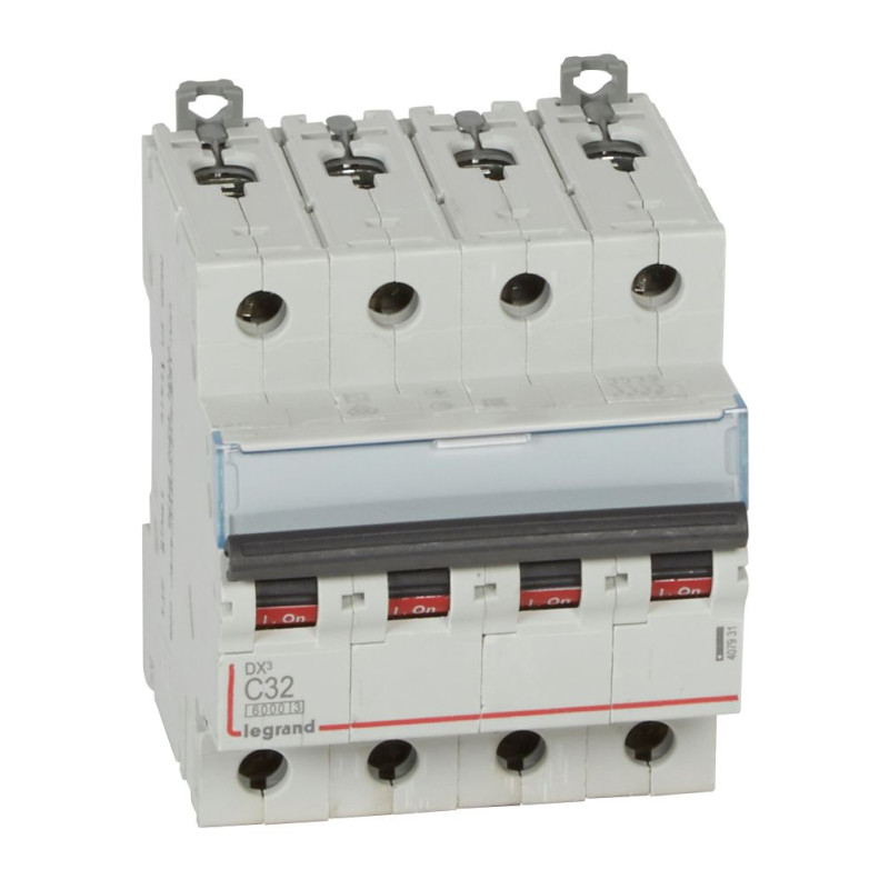 407931 Legrand DX3 - Disjoncteur tétrapolaire 32A 4P C32 6000A/10kA - 400V - Bornes à vis - 4 modules