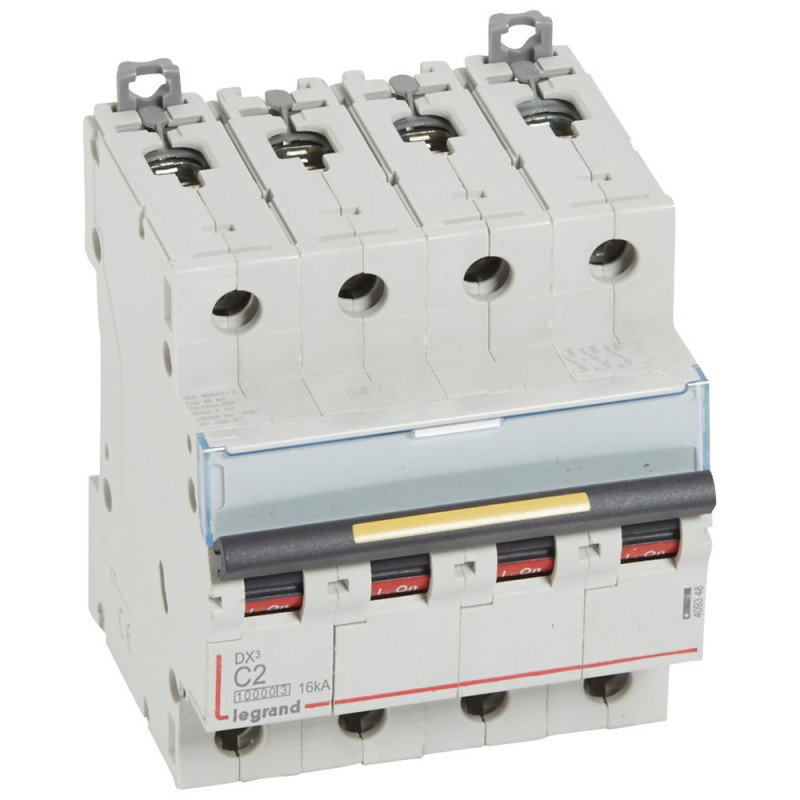 409348 Legrand DX3 - Disjoncteur tétrapolaire 2A 4P C2 10000A/16kA - 400V - Courbe C - À vis - 4 modules